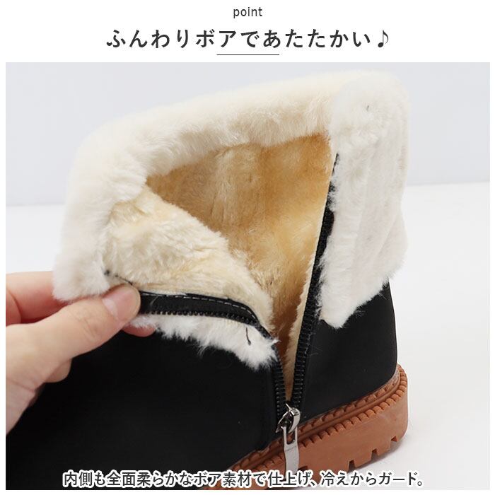 ・内側も全面柔らかなボア素材で仕上げ、冷えからガード。