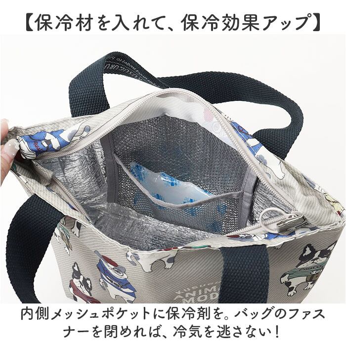 ・内側メッシュポケットに保冷剤を。バッグのファスナーを閉めれば、冷気を逃さない!