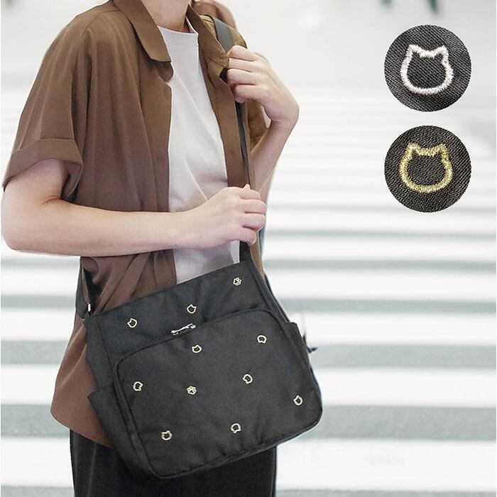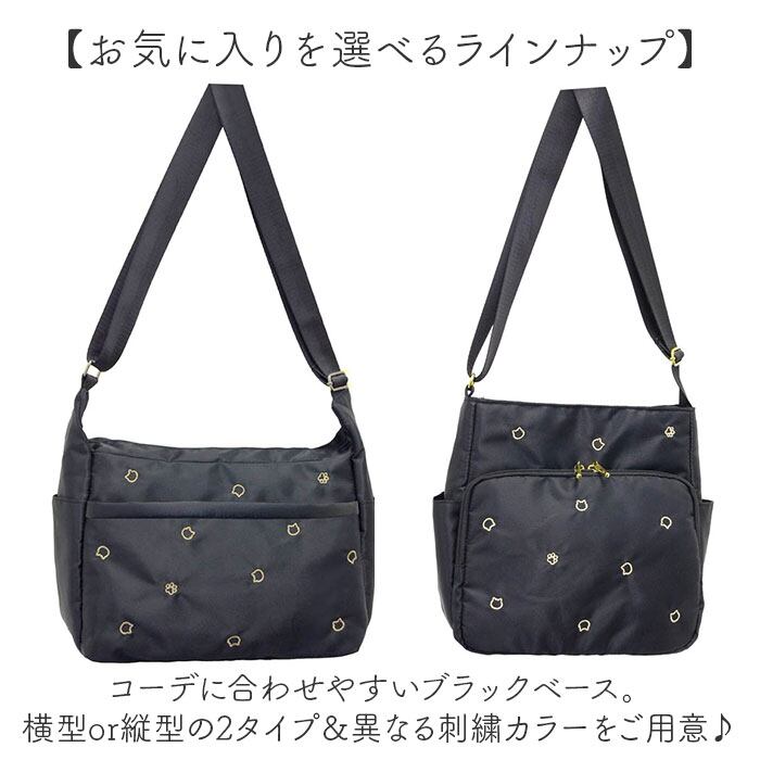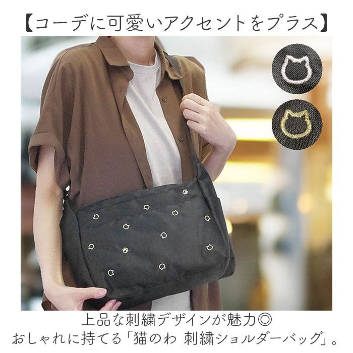 ・上品な刺繍デザインが魅力◎おしゃれに持てる「猫のわ 刺繍ショルダーバッグ」。