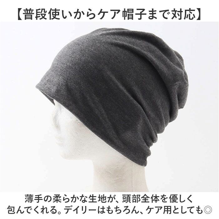 ・薄手の柔らかな生地が、頭部全体を優しく包んでくれる。デイリーはもちろん、ケア用としても◎