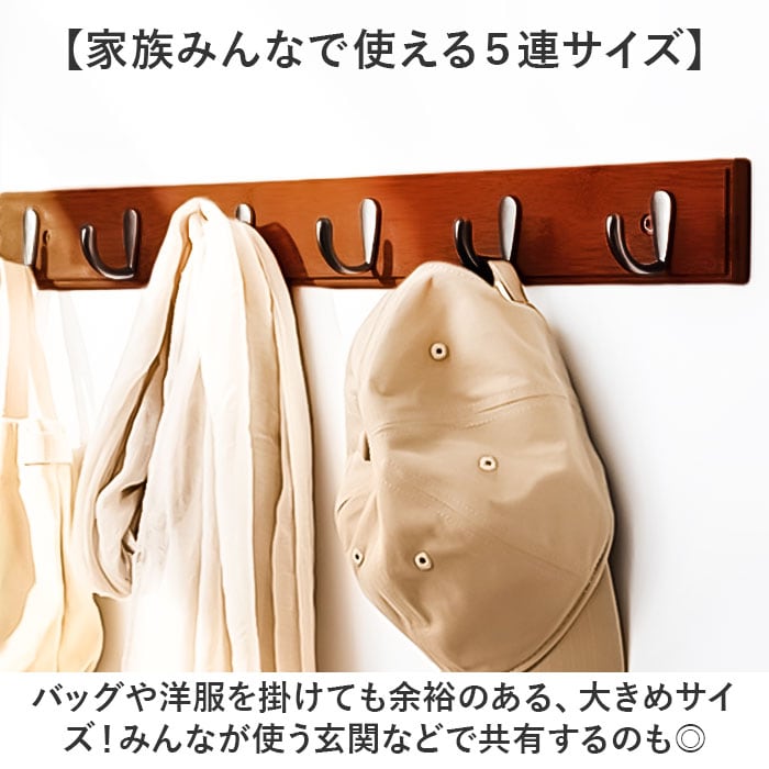 ・バッグや洋服を掛けても余裕のある、大きめサイズ!みんなが使う玄関などで共有するのも◎