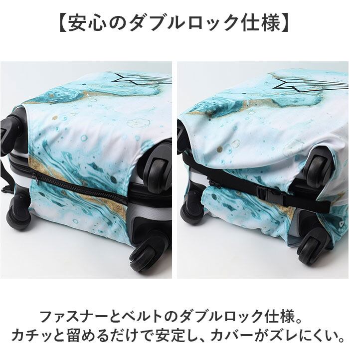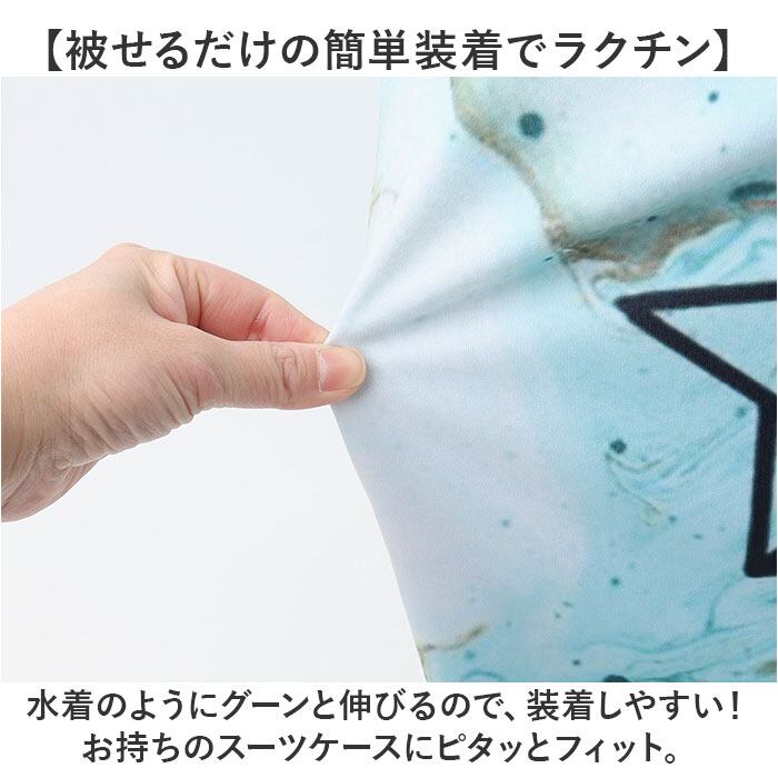 ・水着のようにグーンと伸びるので、装着しやすい!お持ちのスーツケースにピタッとフィット。
