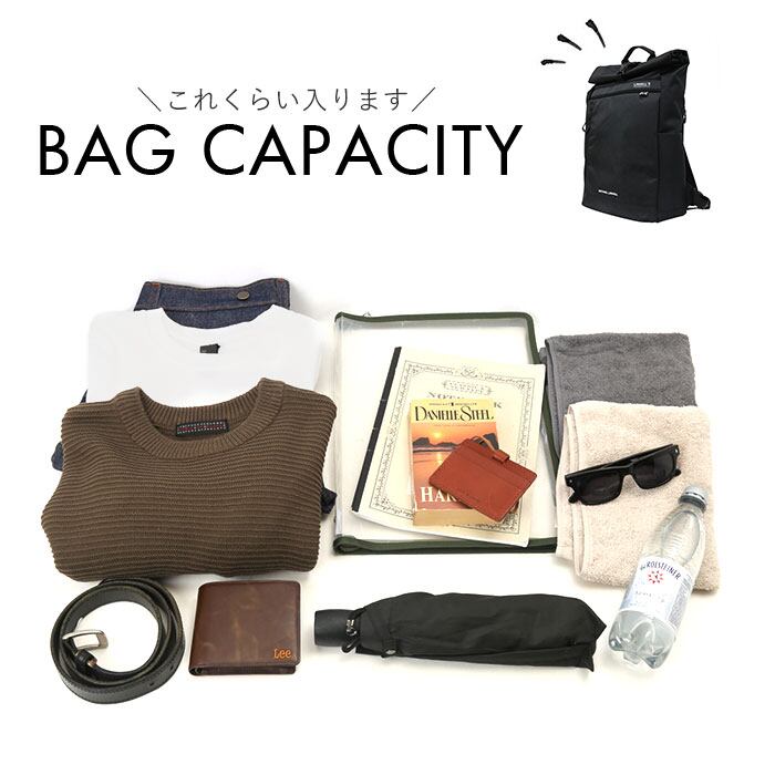 ・メイン収納ルームはB4サイズに対応。マチの薄いスリムなフォルムながら、2泊3日程度の荷物がパッキング可能な約20リットルの大容量設計。