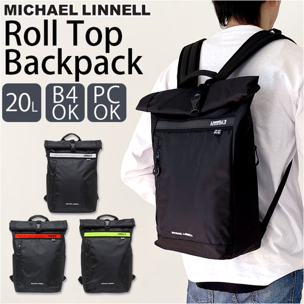 Michael Linnell マイケルリンネル バックパック リュックサック リュック 通販 ナップザック デイバッグ デイバック タウンユース ロールトップ ロールトップリュック アウトドアシーン 男女兼用 ユニセックス メンズ レディース 通勤 通学 ワンタッチ 開け閉め