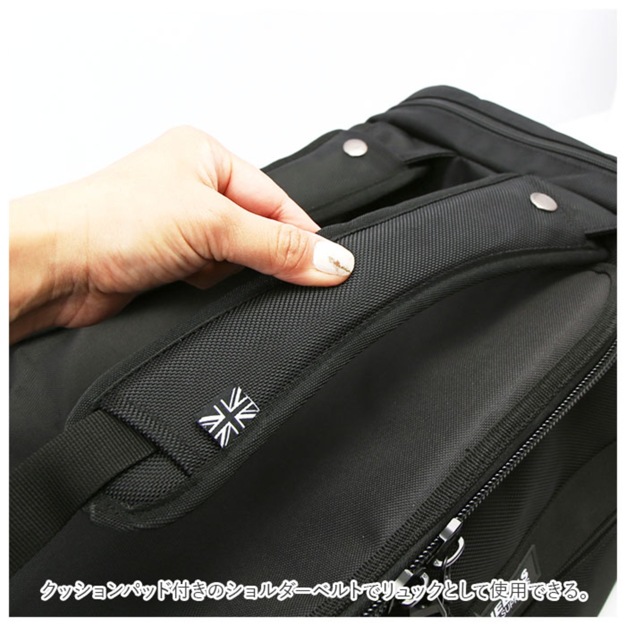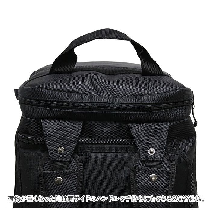 ・クッションパッド付きのショルダーベルトでリュックとして使用できるほか、荷物が重くなった時に両サイドのハンドルで手持ちにもできる2WAY仕様。