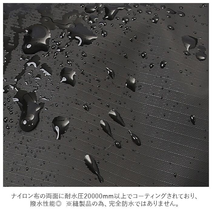 ・ナイロン布の両面に耐水圧20000mm以上でコーティングされており、撥水性能◎ ※縫製品の為、完全防水ではありません。