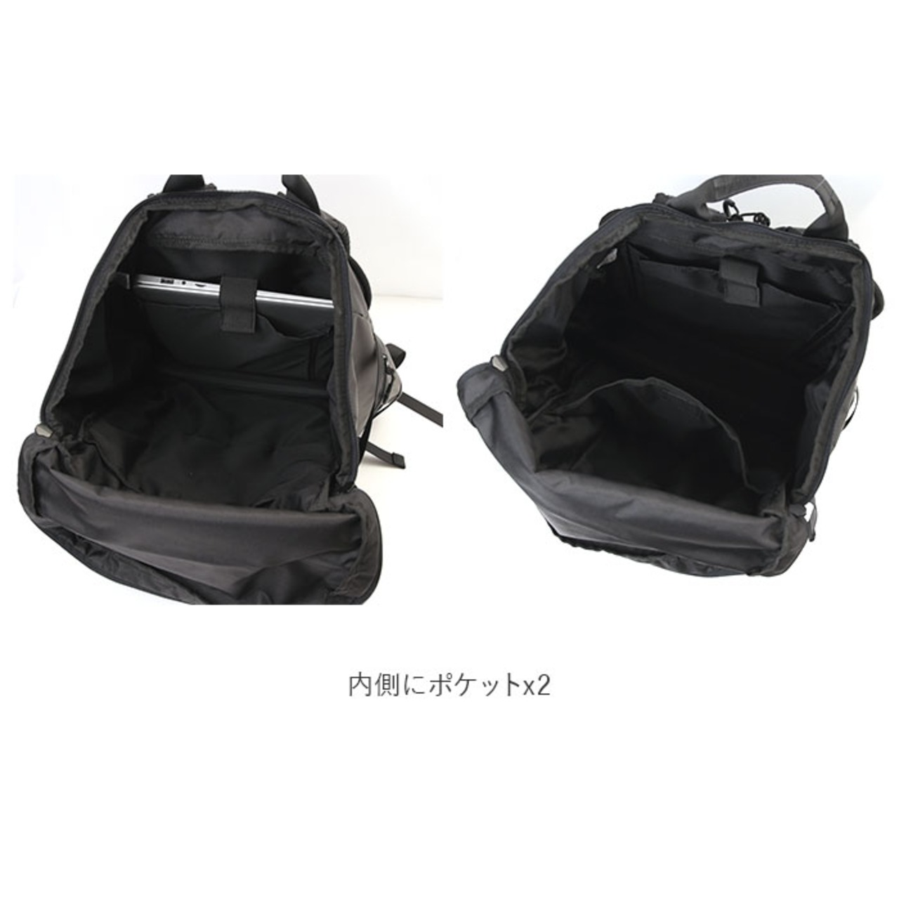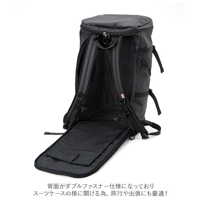 ・背面がダブルファスナー仕様になっておりスーツケースの様に開ける為、旅行や出張にも最適!