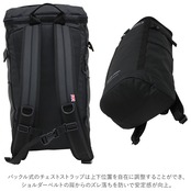 ・チェストストラップは上下位置を自在に調整することができ、ショルダーベルトの肩からのズレ落ちを防いで安定感が向上。