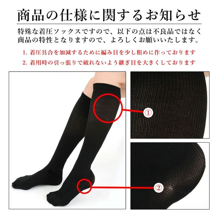 ・キュッと締め付ける凹凸編みを採用!ふくらはぎ部分はゆったり「弱圧」、足首部分は「強圧」の段階着圧で足元スッキリ♪