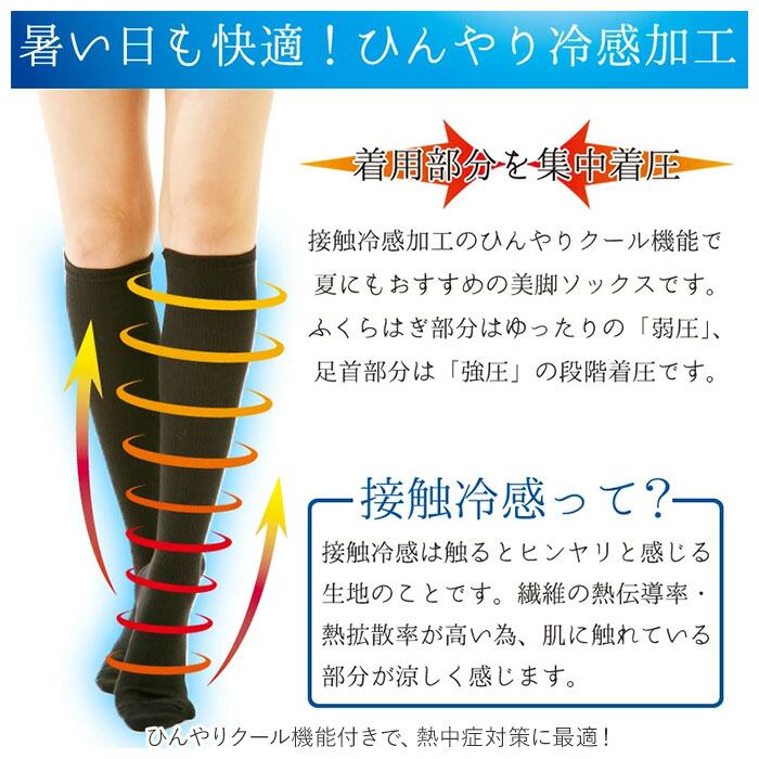 ・ひんやり冷感加工で涼しい!暑い夏に大活躍の「冷感着圧ハイソックス」3足セットが登場。