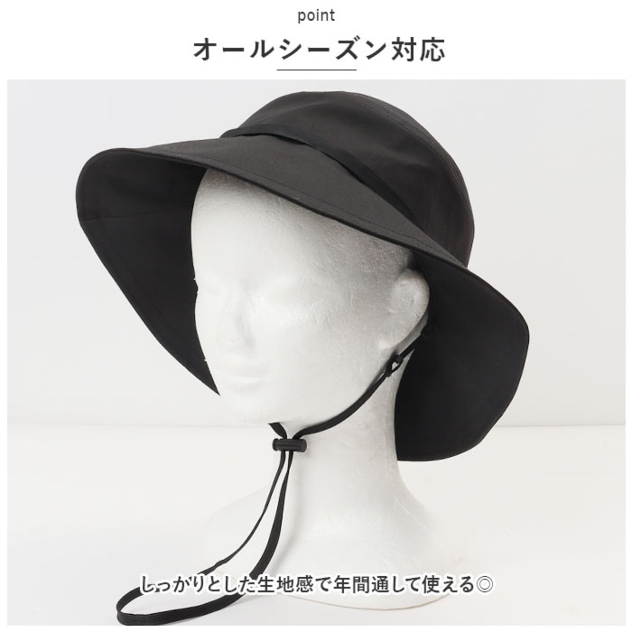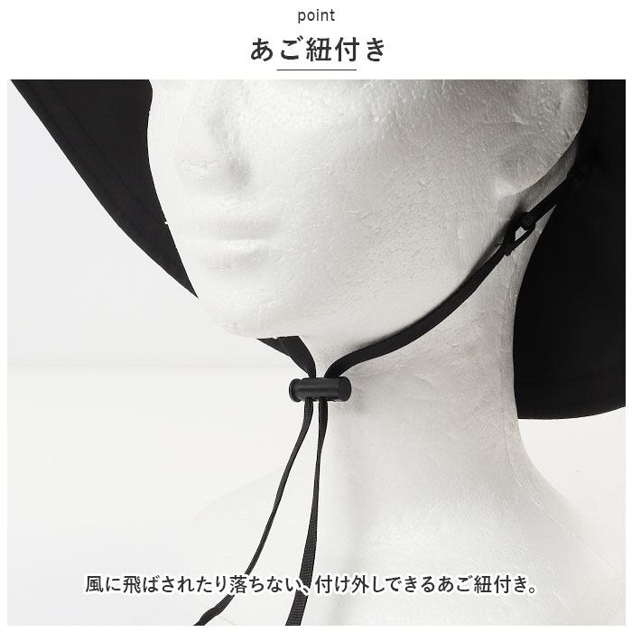 ・風に飛ばされたり落ちない、付け外しできるあご紐付き。