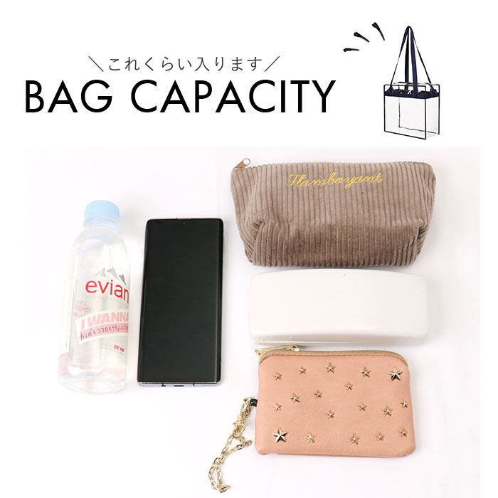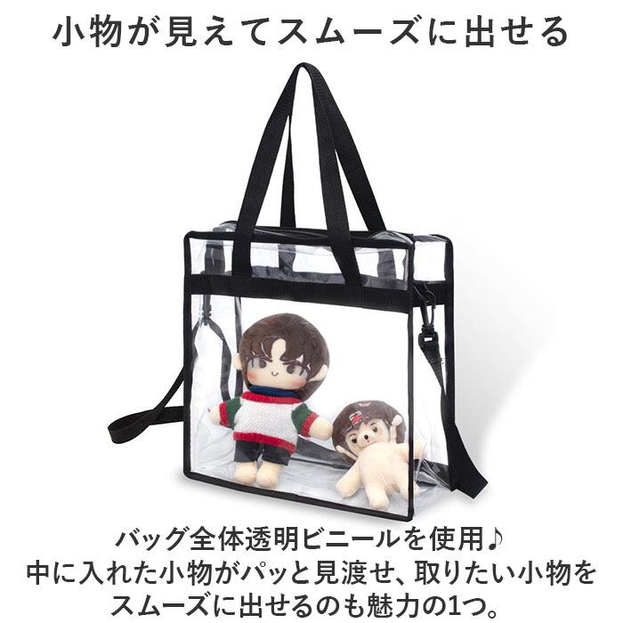 ・バッグ全体透明ビニールを使用♪中に入れた小物がパッと見渡せ、取りたい小物をスムーズに出せるのも魅力の1つ。