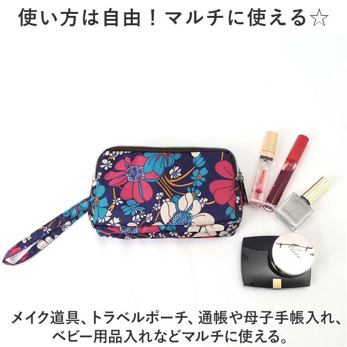 ・メイク道具、トラベルポーチ、通帳や母子手帳入れ、ベビー用品入れなどマルチに使える。