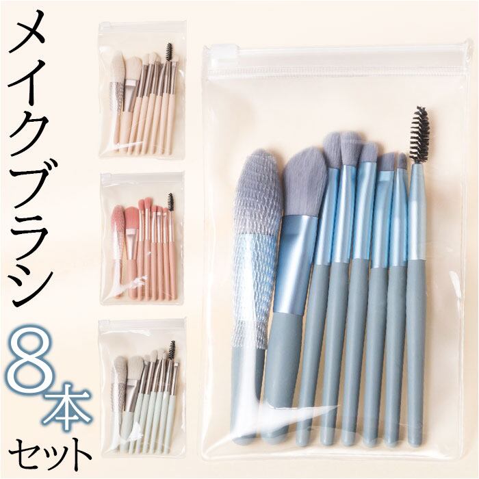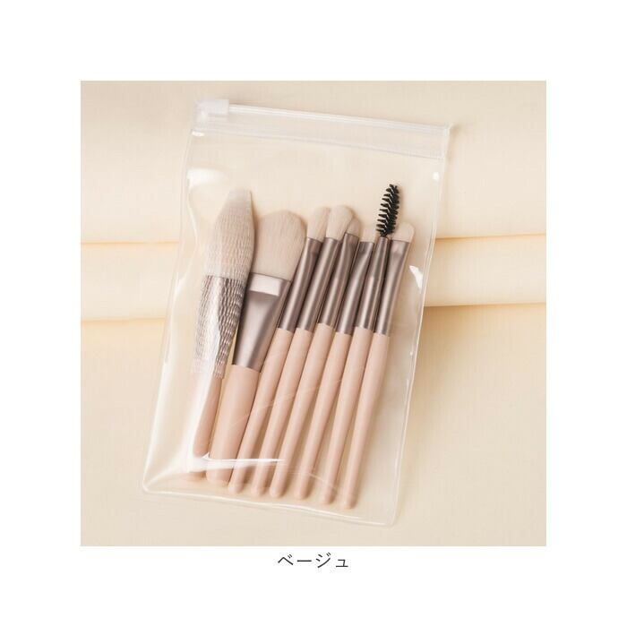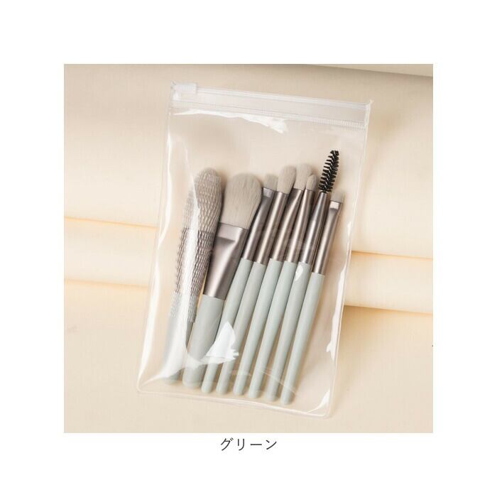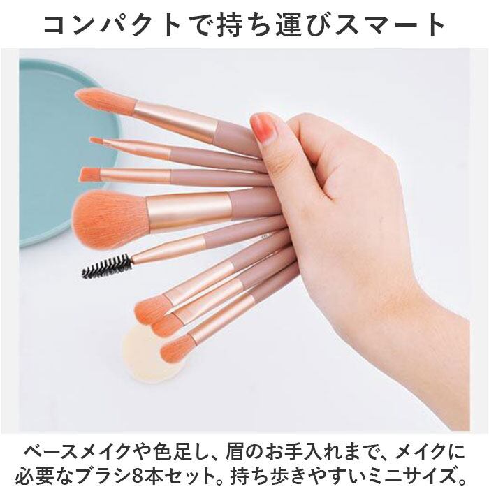 ・ベースメイクや色足し、眉のお手入れまで、メイクに必要なブラシ8本セット。持ち歩きやすいミニサイズ。