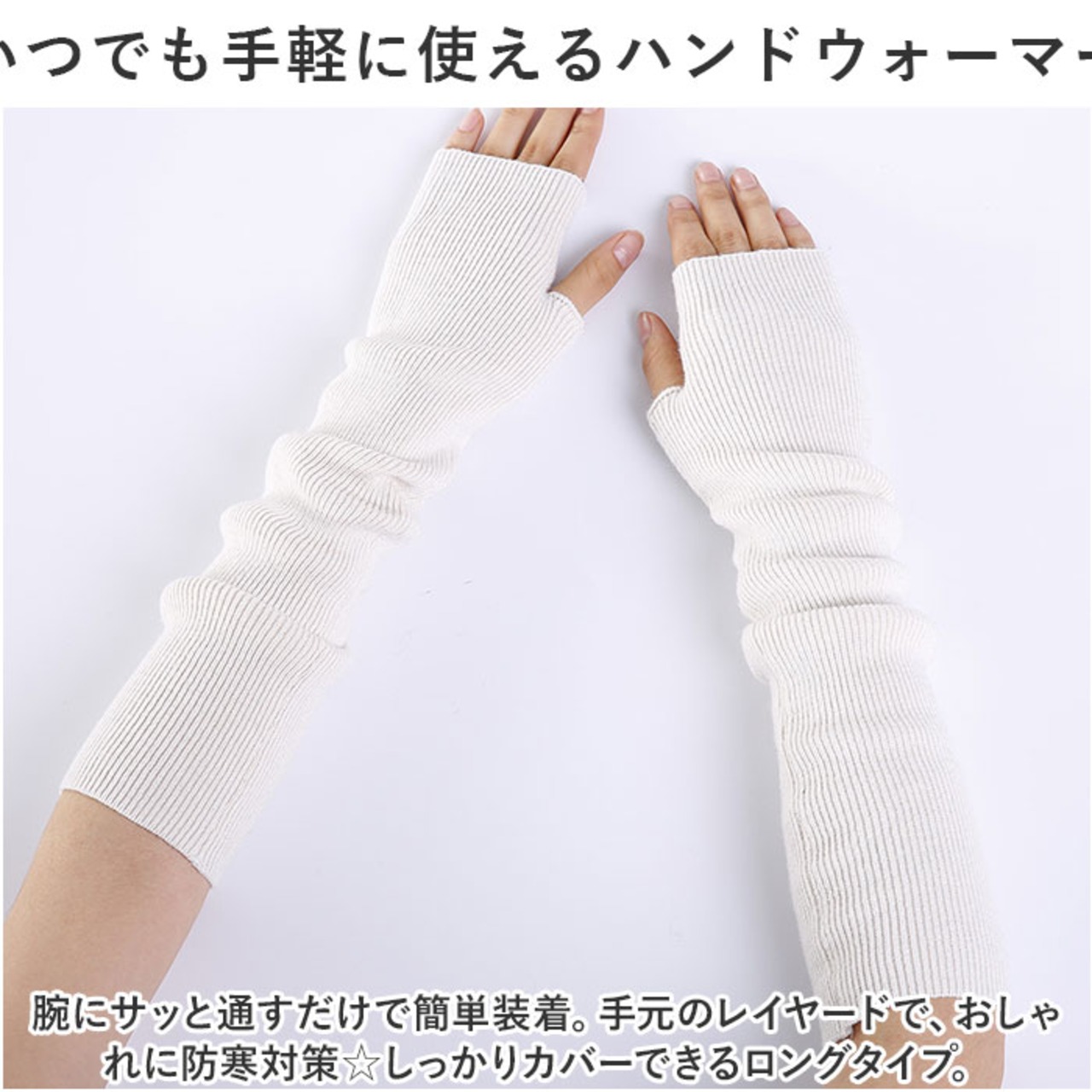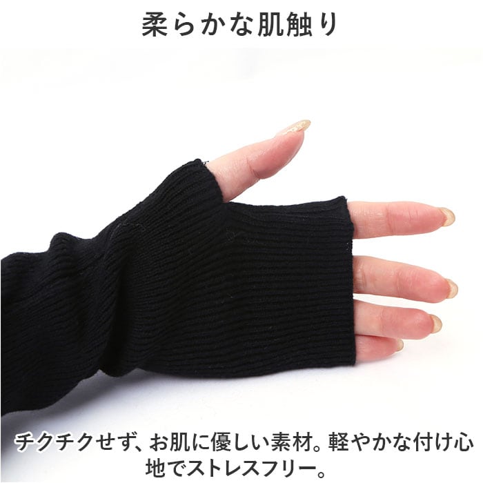 ・腕にサッと通すだけで簡単装着。手元のレイヤードで、おしゃれに防寒対策☆しっかりカバーできるロングタイプ。