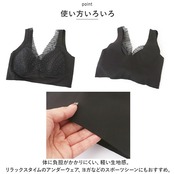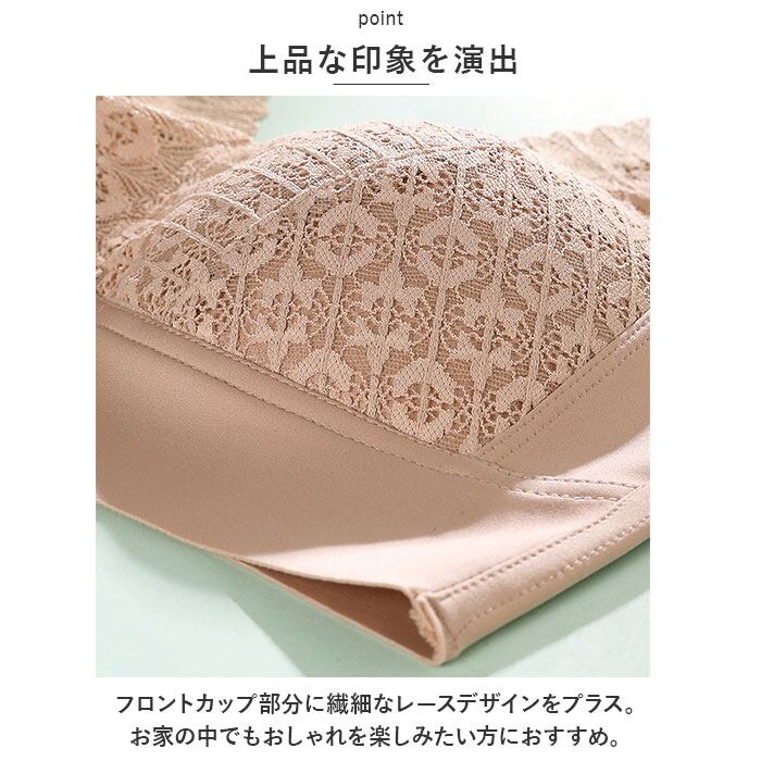 ・フロントカップ部分に繊細なレースデザインをプラス。お家の中でもおしゃれを楽しみたい方におすすめ。