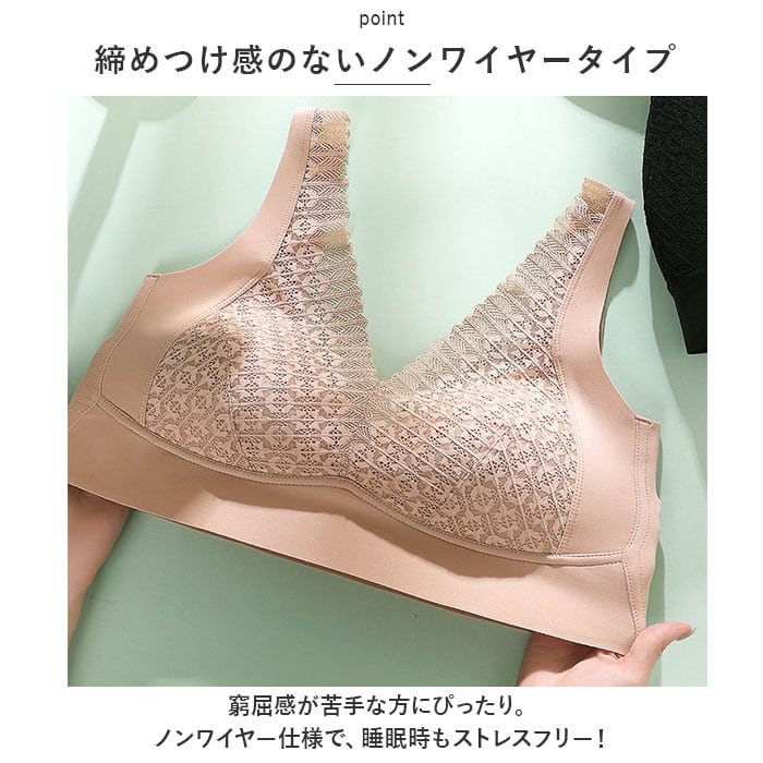・窮屈感が苦手な方にぴったり。ノンワイヤー仕様で、睡眠時もストレスフリー!