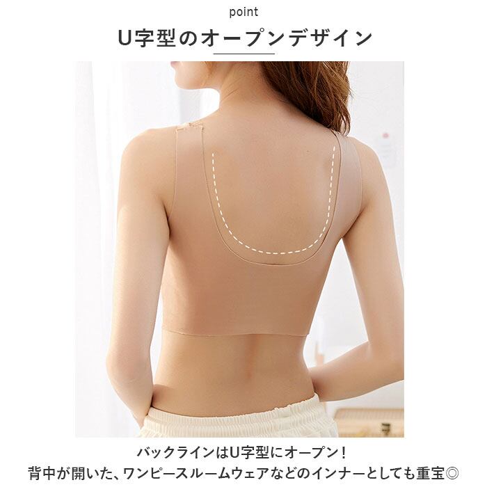 ・バックラインはU字型にオープン!背中が開いた、ワンピースルームウェアなどのインナーとしても重宝◎