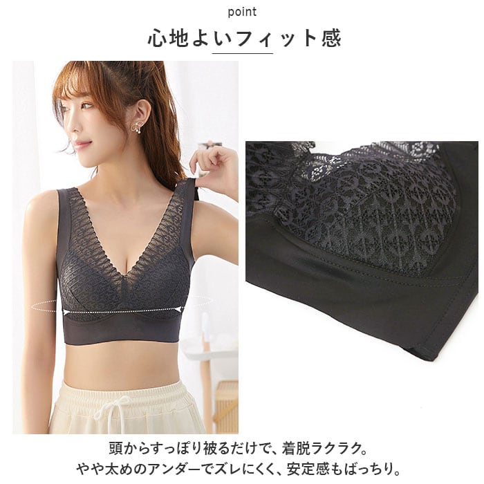 ブラジャー ナイトブラ 通販 フルカップブラジャー ブラ 単品 ホックなし Vネック レース レディースインナー 婦人下着 下着 フルカップブラ カップ付 アンダーウェア おしゃれ かわいい 大人 可愛い シンプル