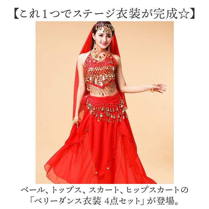 ・ベール、トップス、スカート、ヒップスカートの「ベリーダンス衣装 4点セット」が登場。