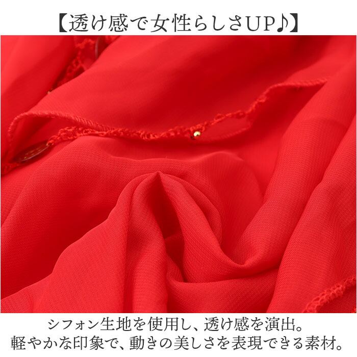・シフォン生地を使用し、透け感を演出。軽やかな印象で、動きの美しさを表現できる素材。