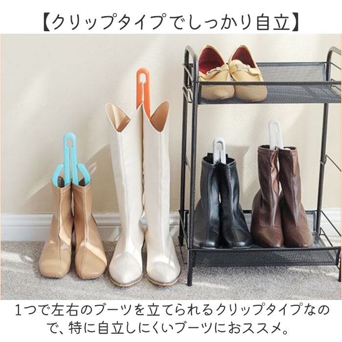 1つで左右のブーツを立てられるクリップタイプなので、特に自立しにくいブーツにおススメ。
