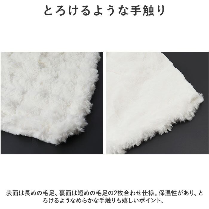 ・表面は長めの毛足、裏面は短めの毛足の2枚合わせ仕様。保温性があり、とろけるようなめらかな手触りも嬉しいポイント。