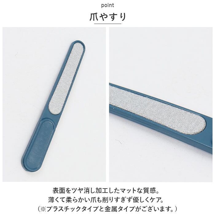 ・表面をツヤ消し加工したマットな質感。薄くて柔らかい爪も削りすぎず優しくケア。(※プラスチックタイプと金属タイプがございます。)