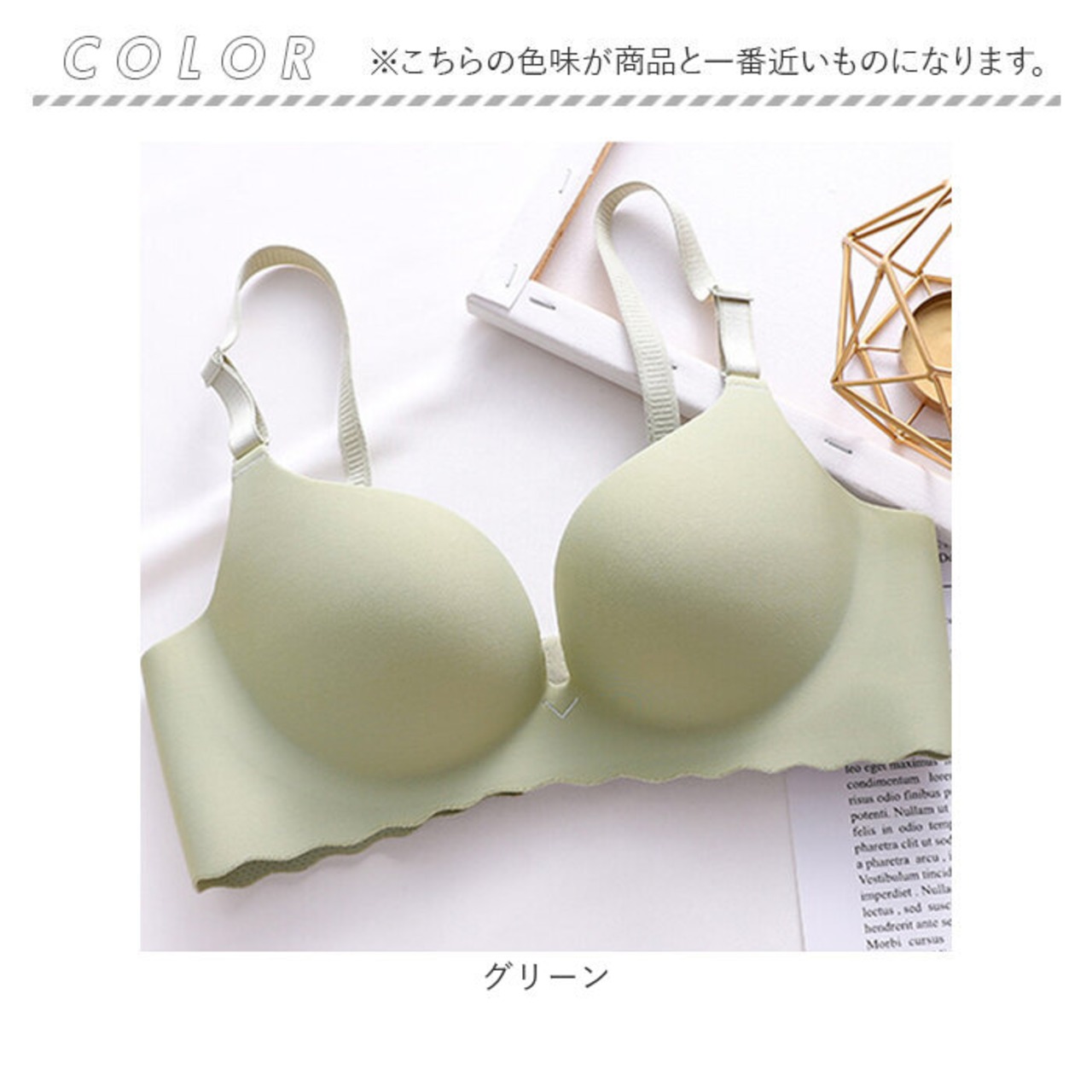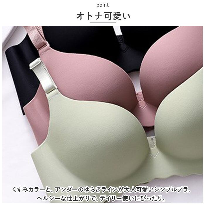・くすみカラーと、アンダーのゆらぎラインが大人可愛いシンプルブラ。ヘルシーな仕上がりで、デイリー使いにぴったり。