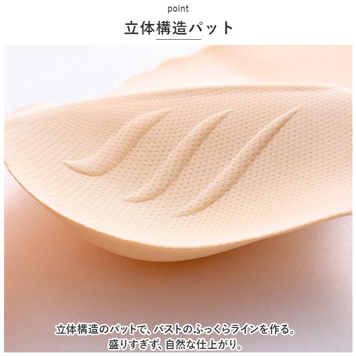 ・立体構造のパットで、バストのふっくらラインを作る。盛りすぎず、自然な仕上がり。