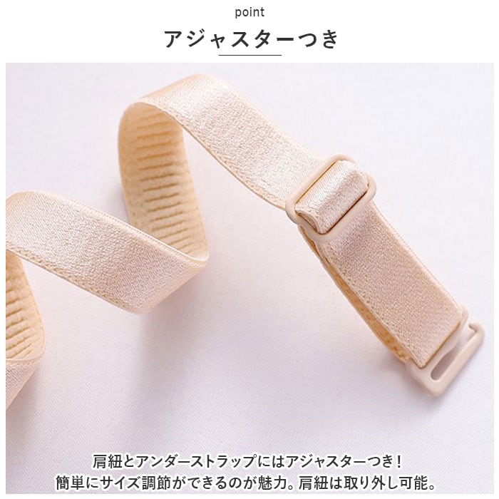 ・肩紐とアンダーストラップにはアジャスターつき!簡単にサイズ調節ができるのが魅力。肩紐は取り外し可能。