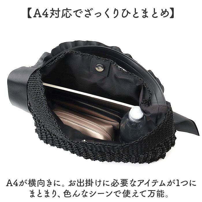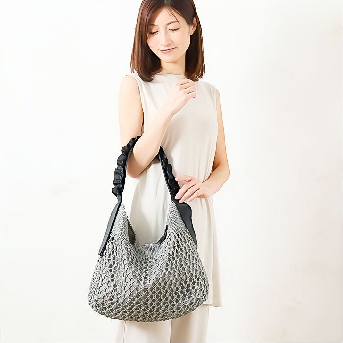 ・大人の雰囲気を出しつつ、手軽に持ち出せる◎「コード編みフリルワンハンドルバッグ」。