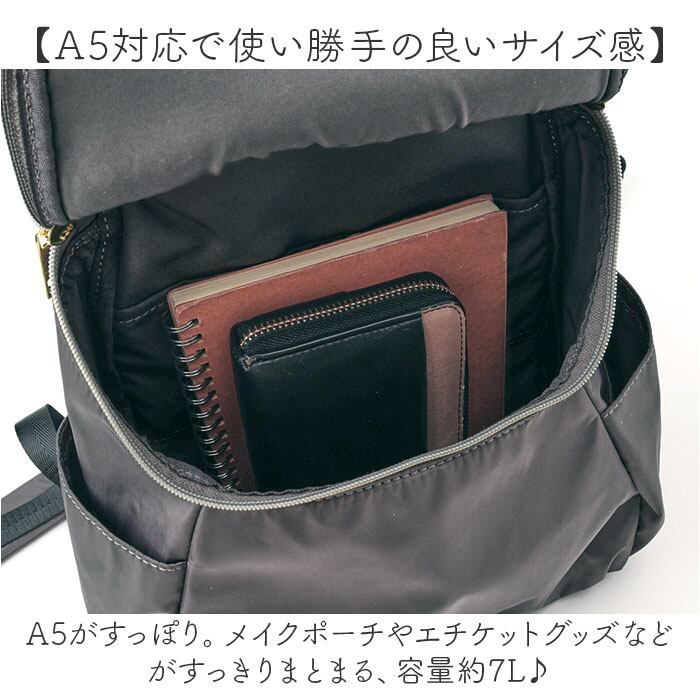 ・A5がすっぽり。メイクポーチやエチケットグッズなどがすっきりまとまる、容量約7L♪