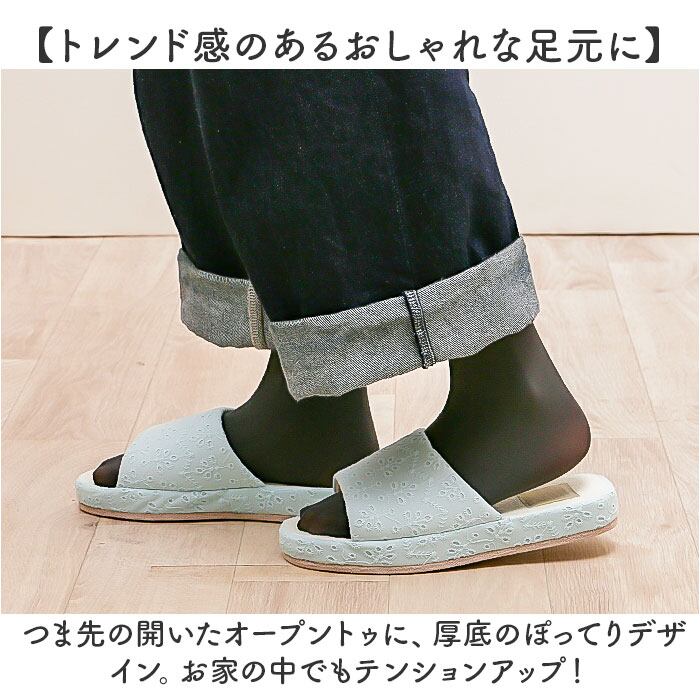 ・つま先の開いたオープントゥに、厚底のぽってりデザイン。お家の中でもテンションアップ!