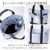 ・500mlペットボトルが定位置に収まるボトルホルダー&9ポケット。小物も迷子知らず◎