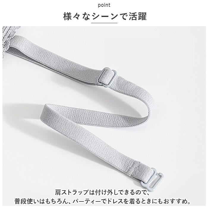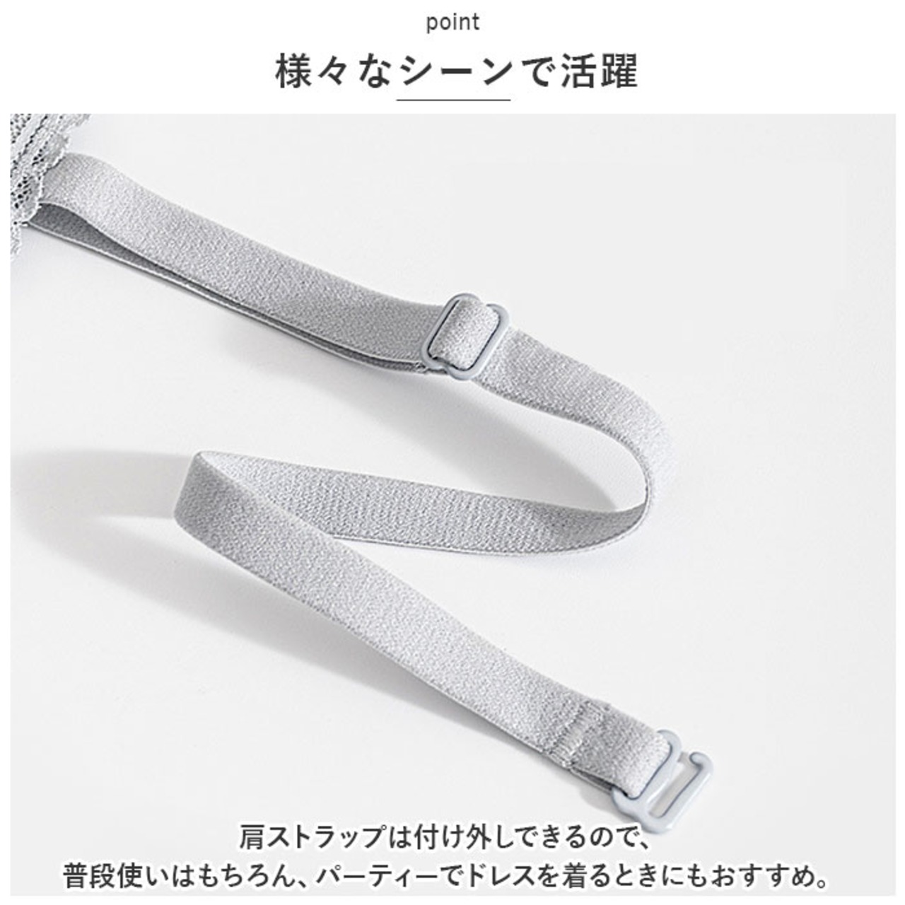 ・肩ストラップは付け外しできるので、普段使いはもちろん、パーティーでドレスを着るときにもおすすめ。