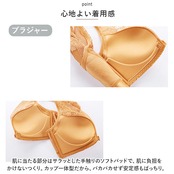 ・バストをしっかり包み込む、もっちりとした立体カップ設計。程よい硬さの脇高サイドボーンが前へ押し上げ、横流れを防止。