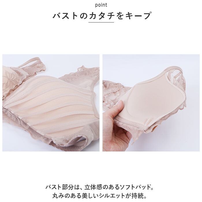 ・バスト部分は、立体感のあるソフトパッド。丸みのある美しいシルエットが持続。