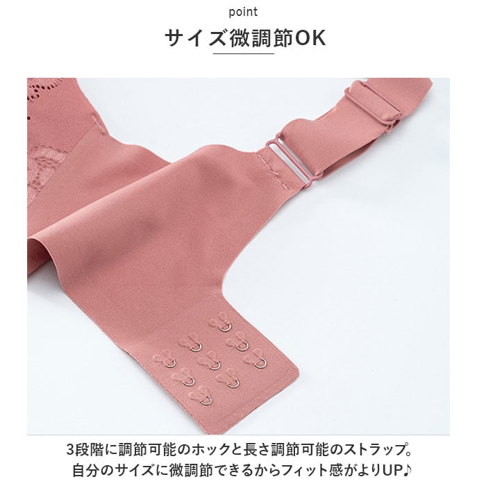 3段階に調節可能のホックと長さ調節可能のストラップ。自分のサイズに微調節できるからフィット感がよりUP♪