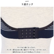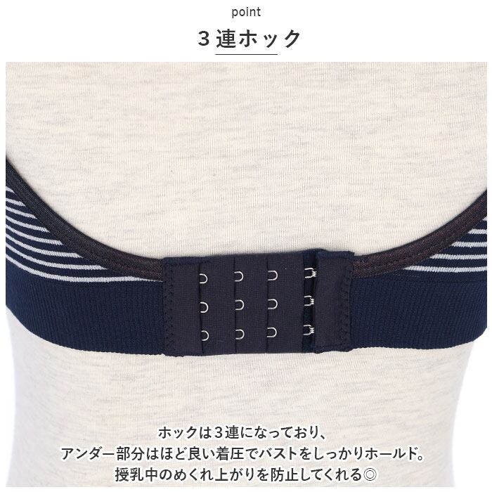 ・ホックは3連になっており、アンダー部分はほど良い着圧でバストをしっかりホールド。授乳中のめくれ上がりを防止してくれる◎