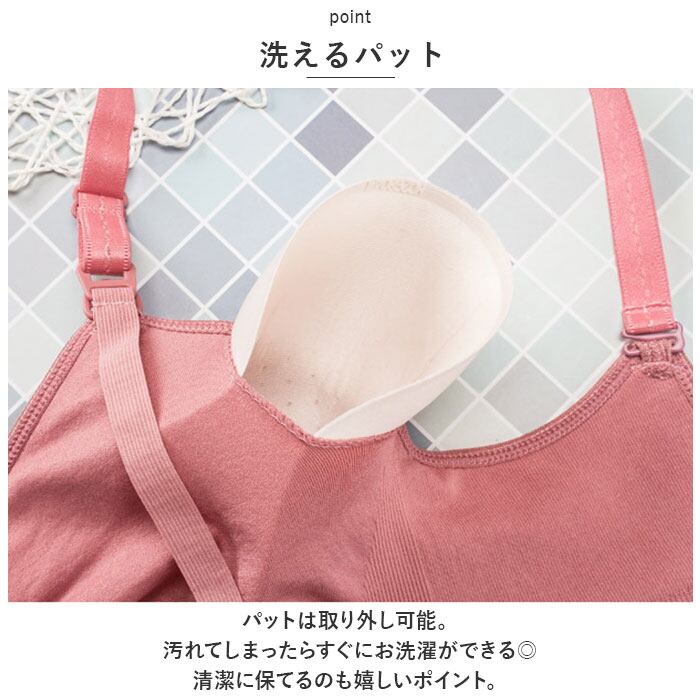 ・ブラを着けたまま授乳ができる。カップ部分はカチッと簡単に外せる仕様。お家でもお出かけでも活躍する授乳ブラ。