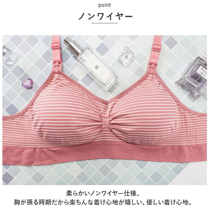 ・柔らかいノンワイヤー仕様。胸が張る時期だから楽ちんな着け心地が嬉しい、優しい着け心地。