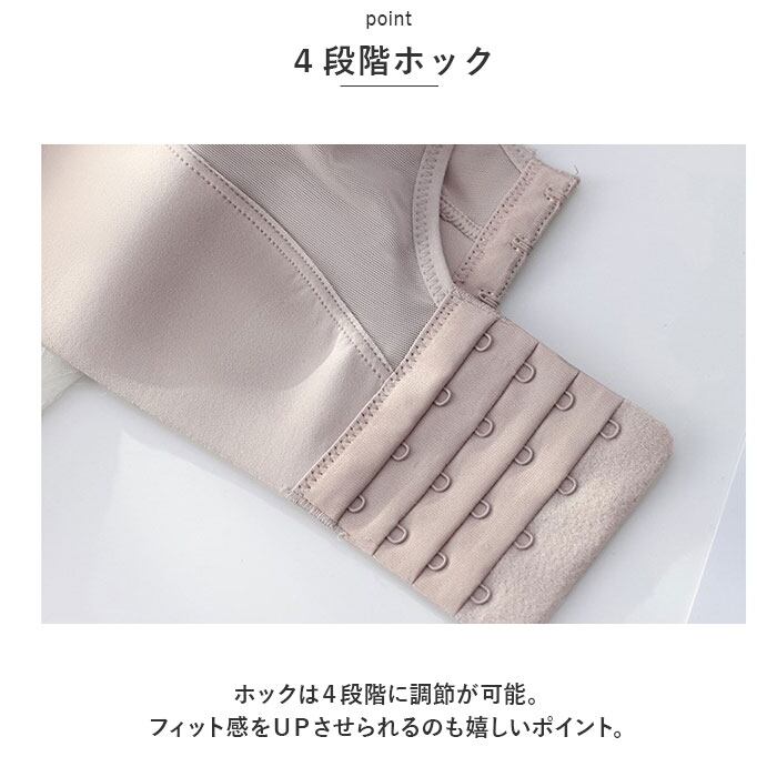 ・ホックは4段階に調節が可能。フィット感をUPさせられるのも嬉しいポイント。