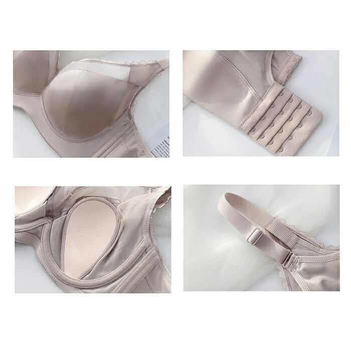 ・大きいバストを小さくスッキリ魅せるブラ。左右一体型の立体カップでバストの突出感を徹底的に抑え、スッキリしたバストラインをメイク!