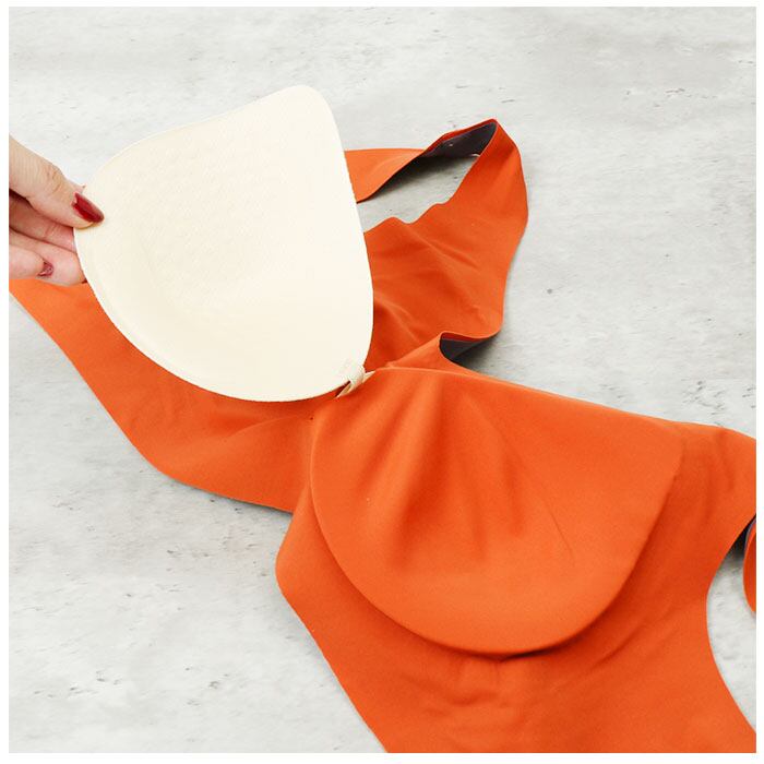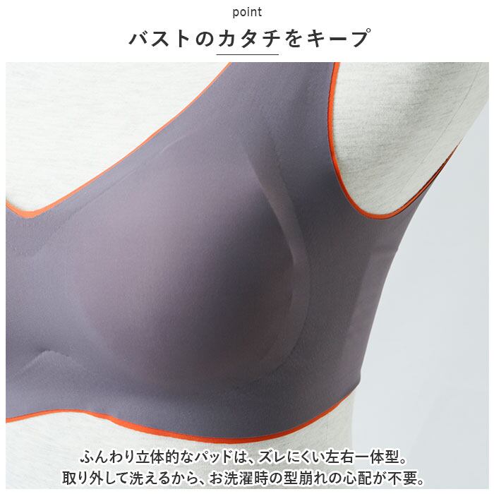 ・ふんわり立体的なパッドは、ズレにくい左右一体型。取り外して洗えるから、お洗濯時の型崩れの心配が不要。