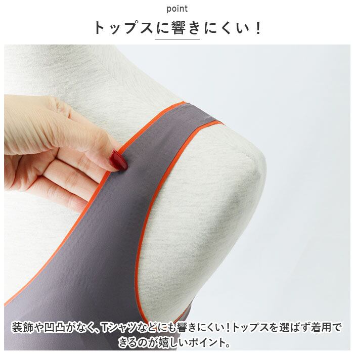 ・装飾や凹凸がなく、Tシャツなどにも響きにくい!トップスを選ばず着用できるのが嬉しいポイント。