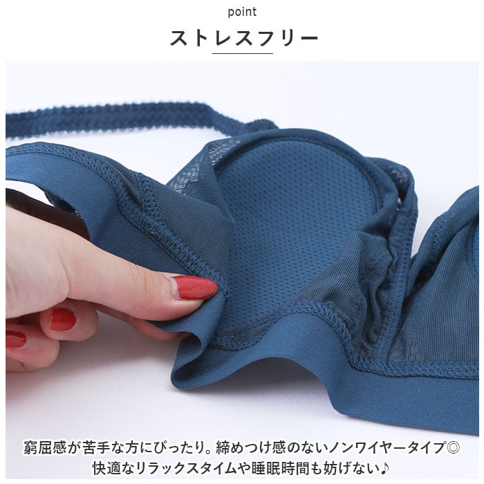 ・窮屈感が苦手な方にぴったり。締めつけ感のないノンワイヤータイプ◎快適なリラックスタイムや睡眠時間も妨げない♪