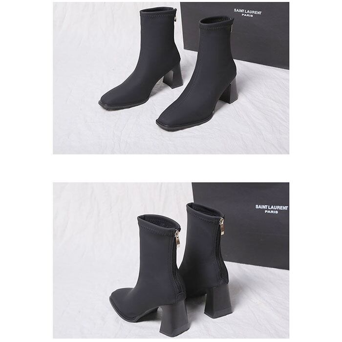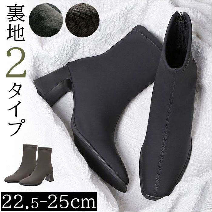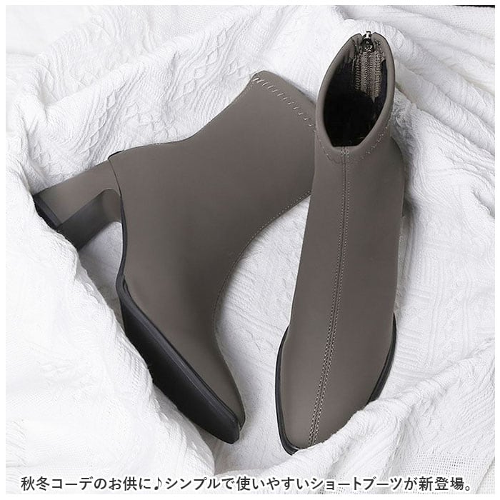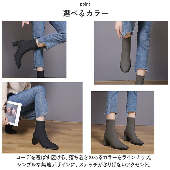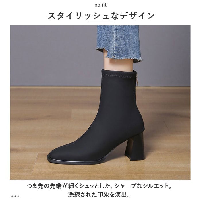 ブーツ レディース 通販 ショートブーツ 靴 くつ ヒール 太ヒール スクエアトゥ 柔らかい 通気性 合皮 スリムアンクル バックジップ ファスナー 6.5cmヒール シンプル 上品 通勤 通学 袴 卒業式 フォーマル お呼ばれ おしゃれ オシャレ