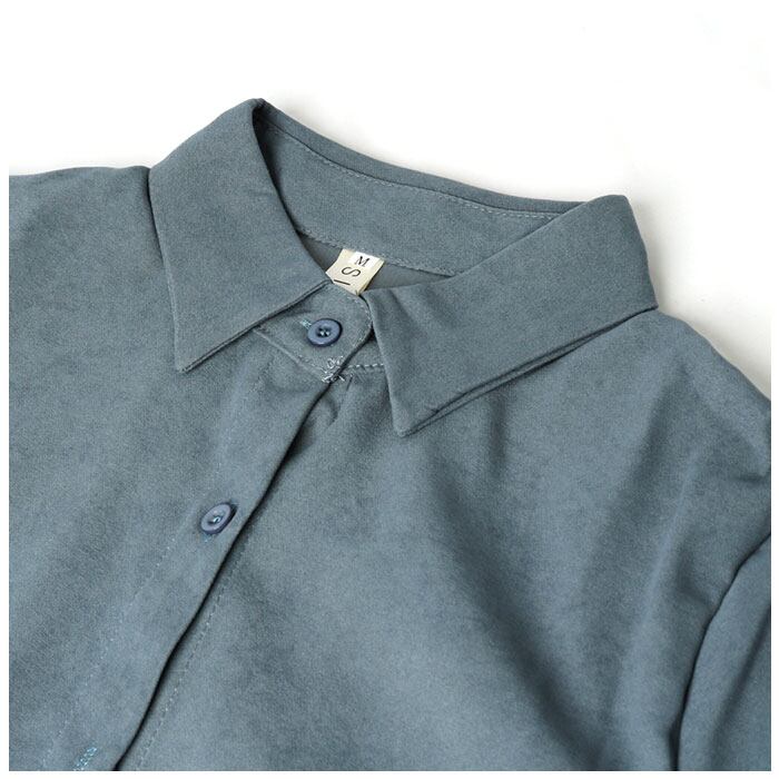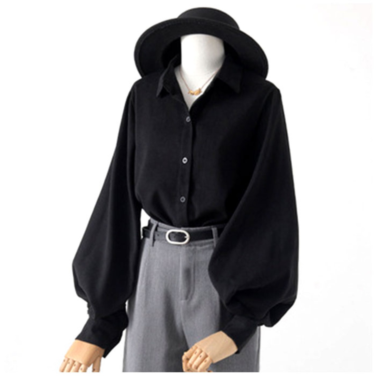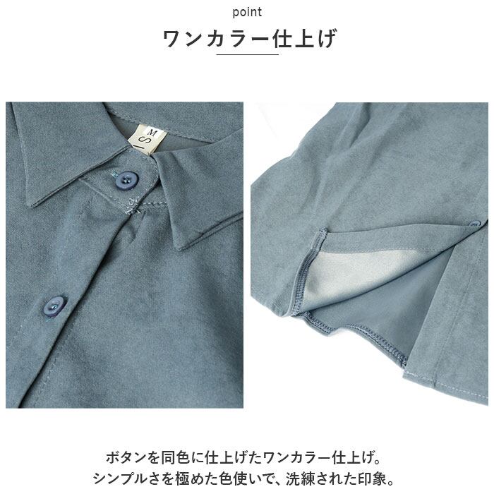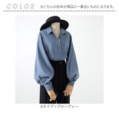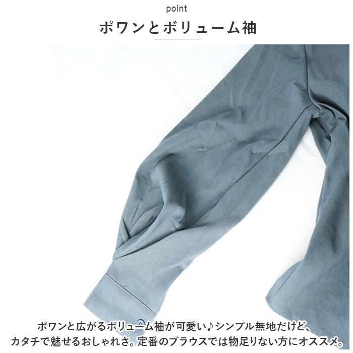 ・ポワンと広がるボリューム袖が可愛い♪シンプル無地だけど、カタチで魅せるおしゃれさ。定番のブラウスでは物足りない方にオススメ。