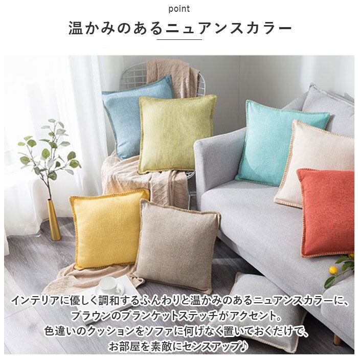 クッションカバー 45×45cm 通販 クッション カバー おしゃれ オシャレ 麻 リネン シンプル 無地 ナチュラル スクエア 角型 洗える 座布団カバー ソファ リビング 寝室 新生活 模様替え かわいい インテリア 雑貨 ファブリック